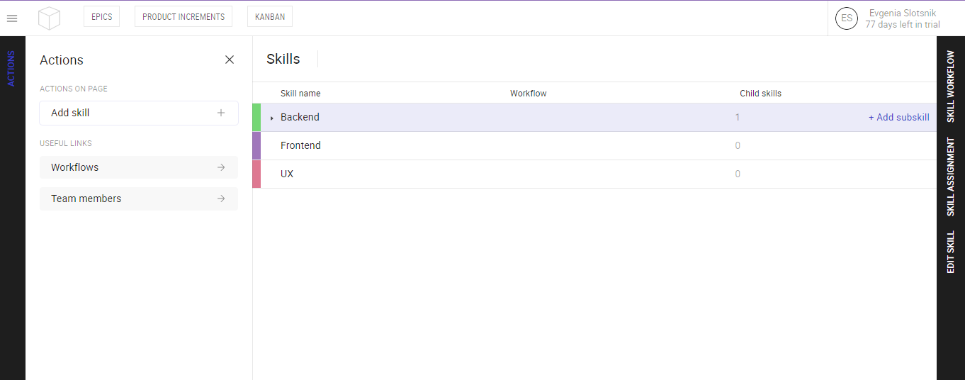 - Updating the expected completion date of product increments when changing the workflow selection of a skill