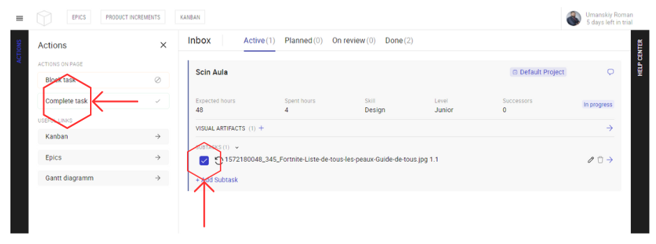 5. Mark subtasks (comment points) as completed. This is a mandatory condition for moving the task to the verification stage!