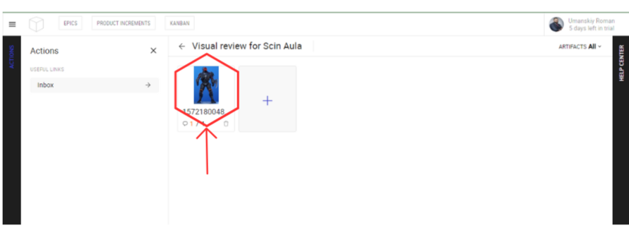 - Upload artifacts using any of the specified methods - add an artifact on the Inbox screen or navigate to the Visual Review screen.