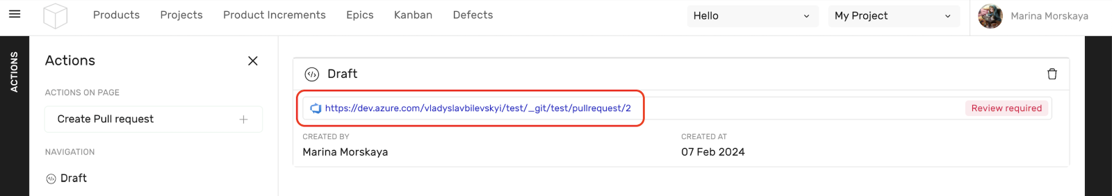 Copy the pull request url from Azur DevOps project.