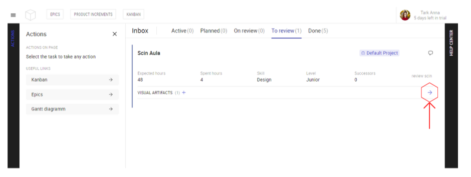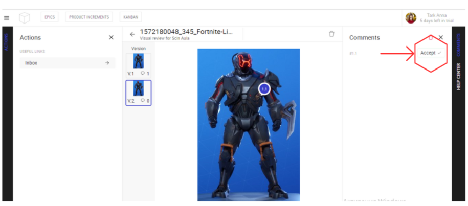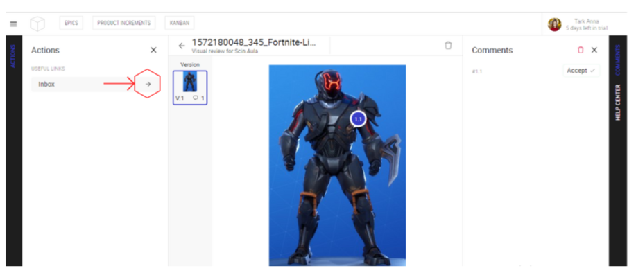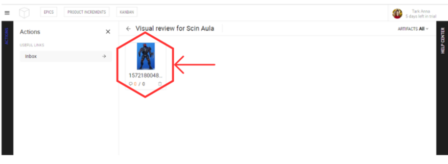 3. Once all the comments are created (marked with points on the artifact version), return to the Inbox screen.