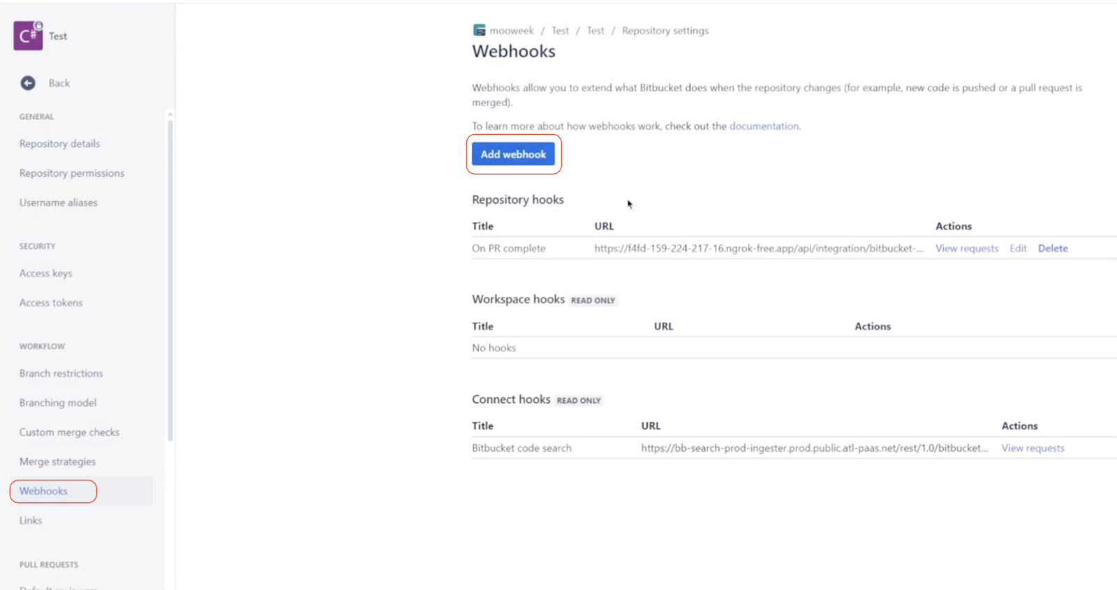 Click on the “Add webhook” button to add a new Webhook.